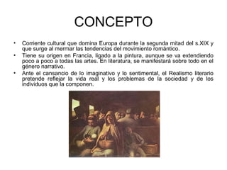 El documento describe el realismo como una corriente literaria que surgió en Europa en la segunda mitad del siglo XIX en reacción al romanticismo. Se caracteriza por reflejar la vida real de forma verosímil, centrándose en la clase media y describiendo detalladamente ambientes, personajes y la sociedad de la época. La novela fue el género preferido de los escritores realistas.
