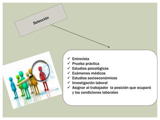 El documento habla sobre las áreas de administración. Menciona temas como la selección de personal, entrenamiento, análisis de puestos, higiene y seguridad industrial, administración de nómina, departamento de producción y sus funciones principales como ingeniería de producto, planta e industrial, planeación y control de producción y abastecimiento.