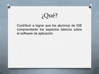 Este documento proporciona un recurso educativo para estudiantes de segundo semestre de Ingeniería en Gestión Empresarial con el fin de ayudarlos a comprender conceptos básicos sobre software de aplicación a través de una presentación electrónica y un crucigrama de refuerzo.