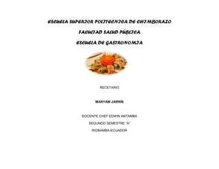 El documento de la Escuela Superior Politécnica de Chimborazo aborda la importancia de la gastronomía como actividad económica global, destacando su evolución y la influencia del turismo en su especialización. También incluye una serie de recetas detalladas, como bondiola de cerdo y conejo a la mostaza, que combinan técnicas tradicionales con innovaciones. A través de estos procesos culinarios, se exploran los ingredientes y métodos que enriquecen la cultura gastronómica.