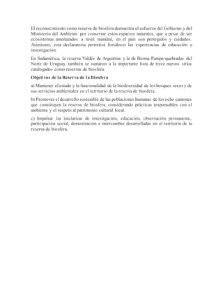 El Bosque Seco ecuatoriano, ubicado en el suroeste del país, fue declarado como parte de la Red Mundial de Reservas de Biosfera de la UNESCO debido a su gran biodiversidad, que incluye 51 aves endémicas, 15 tipos de árboles y arbustos, y tres mamíferos. La reserva de biosfera cubre más de 500,000 hectáreas y tiene como objetivos mantener la biodiversidad y servicios ambientales de los bosques secos, promover el desarrollo sostenible de las comunidades locales, e imp