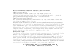 Este documento presenta una receta para filetes de salmonete con praliné de picada y gnocchi del suquet. Incluye instrucciones para preparar el praliné de piñones tostados y leche, el suquet de pescado con tomate, cebolla, ajo, laurel y patatas, y el jarabe de tinta de calamar con vino blanco, azúcar y pimienta. El plato final combina los filetes de salmonete con la salsa de suquet y gnocchi, acompañados por el praliné de piñones.