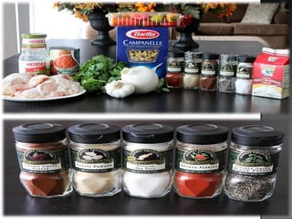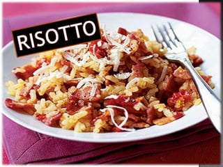 El documento proporciona instrucciones para tres recetas: Mexi Chicken (Pollo Mexicano), que incluye instrucciones para preparar pollo con pasta y salsa; Brownies, que lista los ingredientes y pasos para hacer brownies; y Risotto de tocino y tomate, dando indicaciones para cocinar arroz risotto con tocino, cebolla y tomates cherry.
