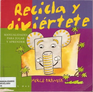 El documento presenta instrucciones para hacer diferentes caretas y máscaras utilizando materiales de reciclaje como platos, cartón, botones y telas. Incluye instrucciones detalladas para hacer caretas de panda, lobo, mariposa, cebra, elefante, cerdito, conejo, vampiro y payaso. El objetivo es promover el reciclaje y la creatividad a través de actividades manuales.