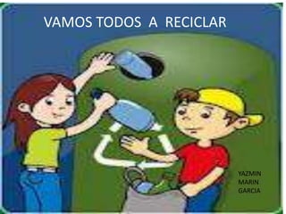El documento describe las ventajas y la importancia del reciclaje. El reciclaje permite conservar recursos naturales y energía, reducir los residuos y proteger el medio ambiente. Algunos materiales como el papel, el vidrio y los plásticos pueden reciclarse fácilmente, mientras que otros como aceites y pinturas no son adecuados para el reciclaje. El documento también destaca los desafíos sociales relacionados con el reciclaje, como la falta de educación y la resistencia al cambio de hábitos.