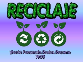 Este documento describe el proceso de reciclaje y sus beneficios. Explica que el reciclaje convierte los residuos en nuevos productos o materias primas para reducir el uso de recursos, la contaminación y las emisiones de gases de efecto invernadero. También detalla los materiales que se pueden reciclar, como plástico, vidrio, papel, latas y baterías, y las ventajas del reciclaje como ahorrar energía, usar menos materias primas y preservar el medio ambiente.