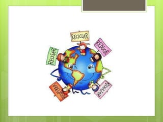 Este documento trata sobre el aprovechamiento y reciclaje de desechos. Explica brevemente la historia del reciclaje, la cadena del reciclado, cómo separar los residuos sólidos en orgánicos, inorgánicos y sanitarios, y los beneficios de separar los residuos. El objetivo es promover el reciclaje y el manejo adecuado de los desechos.