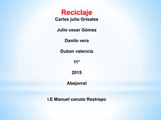 Este documento trata sobre el reciclaje. Explica brevemente la historia del reciclaje y cómo la basura se ha convertido en un problema mayor con el tiempo. Define el reciclaje como un proceso para convertir desechos en nuevos productos y así prevenir el desperdicio de materiales, reducir la contaminación y las emisiones de gases de efecto invernadero. Finalmente, señala que una buena clasificación de los residuos en papel, plástico, vidrio y otros tipos es importante para que cada material pueda ser debidamente procesado