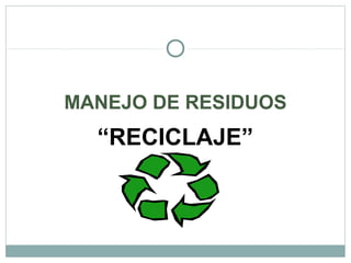 Cada habitante produce medio kilo de residuos diarios, lo que suma 27 mil kilos de basura por año en total. Se recomienda reducir, reutilizar y reciclar los desperdicios, especialmente el papel, plástico, vidrio y metales. Al reciclar estos materiales se ahorran recursos naturales y se reducen la contaminación. El documento provee información sobre cómo clasificar los residuos, hacer composta con material orgánico, y el proceso de reciclaje de diferentes materiales para reutilizarlos.