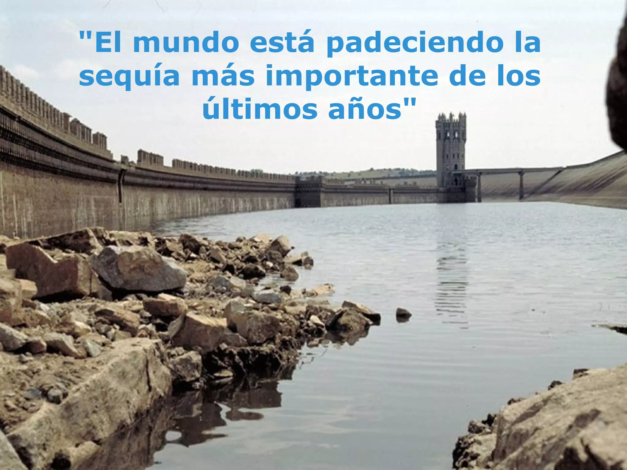 El documento habla sobre la grave sequía que está sufriendo el mundo y la importancia de ahorrar agua. Señala que si no llueve lo suficiente, el agua disponible dependerá de la que se conserve actualmente. Aunque el ahorro individual parezca poco, la suma de todos los pequeños ahorros puede marcar una gran diferencia. Ofrece consejos prácticos como cerrar el grifo mientras nos aseamos, ducharnos en lugar de bañarnos, no usar el inodoro como basurero, reparar grifos que gotean, y compart