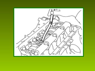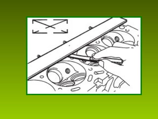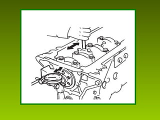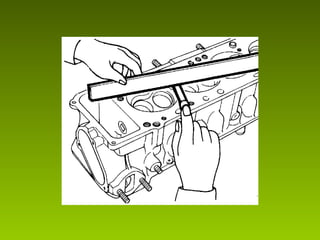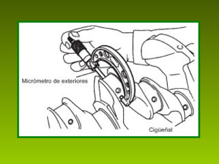Este documento describe los procedimientos y mediciones esenciales para la reconstrucción de motores, incluyendo mediciones del bloque, pistones, cigüeñal, culata y sus componentes. Explica cómo medir el ovalamiento, conicidad, diámetro y planitud utilizando herramientas como micrómetros, comparadores y calibradores. También cubre la medición de holguras, juegos y ajustes para garantizar un ensamblaje correcto y un funcionamiento óptimo del motor reconstruido.