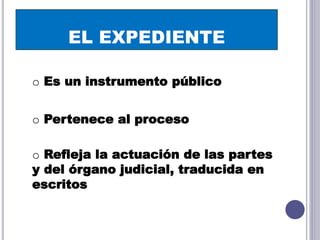 El documento describe el proceso de reconstrucción de un expediente judicial cuando el expediente original se extravía o destruye. El juez ordena la reconstrucción y las partes y el juzgado aportan copias fieles de los escritos y documentos para armar una nueva versión del expediente. Una vez reconstruido, el juez declara que las copias son fidedignas y el nuevo expediente se identifica como una "reconstrucción".