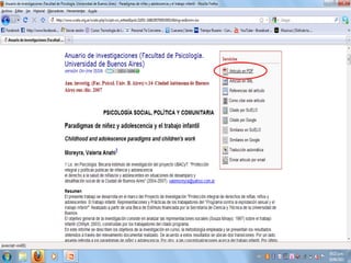 Este documento proporciona información sobre la recopilación bibliográfica y las diferentes herramientas y métodos para realizarla de manera efectiva. Explica cómo utilizar fichas bibliográficas y de lectura para registrar de manera organizada los datos y contenidos de las fuentes. Además, recomienda sitios web académicos confiables como Scielo para realizar búsquedas y encontrar literatura relevante para diferentes temas. Por último, detalla formas adecuadas de citar y referenciar las fuentes utilizadas, como