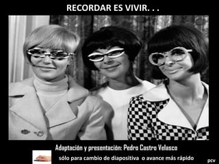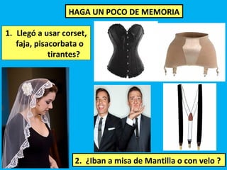 Este documento presenta una lista de 38 preguntas sobre costumbres, tecnología y entretenimiento del pasado con el objetivo de evaluar si el lector se encuentra en la tercera edad. Si el lector responde afirmativamente a la mayoría de las preguntes, se concluye que efectivamente está en la tercera edad. Por otro lado, si no recuerda las respuestas, podría padecer de Alzheimer u otra demencia. Finalmente, se aconseja al lector cuidar su salud y descansar.