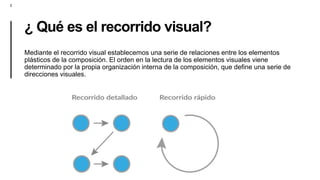 Este documento define conceptos clave como recorrido visual, espacio de arte, espacio cóncavo y convexo, y urbanismo. Explica que el recorrido visual establece relaciones entre elementos visuales mediante su organización. Define el espacio de arte como aquel definido por volumen, forma, color y texturas. Describe lo cóncavo como una cavidad que separa el espacio en dos semiplanos, e lo convexo como similar a la cara externa de una esfera. Finalmente, define el urbanismo como la organización de edificios y espacios de una