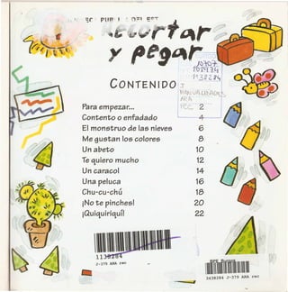 Este documento presenta una serie de manualidades para niños, incluyendo instrucciones paso a paso con ilustraciones para hacer guantes de lana, un abeto de navidad, una peluca de botones, una máquina de vapor de cartulina y más. Las manualidades utilizan materiales comunes como papel, cartulina, lana, algodón, tela, cintas y botones, y son fáciles de seguir para niños. El objetivo es entretenerlos y desarrollar su creatividad.