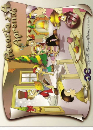 1) El documento presenta un calendario de actividades para diferentes materias dividido en bimestres. 2) Cada celda del calendario contiene un tema a tratar con su respectiva actividad. 3) Los temas incluyen desde reconocimiento de nombres hasta conceptos de matemáticas, ciencias e historia.