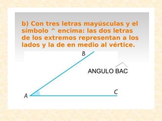 Este documento presenta información sobre conceptos geométricos básicos como rectas, segmentos, ángulos y sus relaciones. Incluye instrucciones para trazar paralelas, perpendiculares, sumar y restar segmentos, dividir segmentos en partes iguales y bisectriz de ángulos utilizando regla y compás. Las páginas de referencia son 88, 124, 126 y las láminas 25, 26, 27, 28 se utilizan para realizar los ejercicios prácticos.