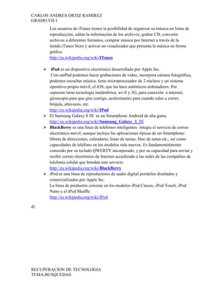 El documento lista los creadores de importantes sitios web y tecnologías como el World Wide Web, IPod, Facebook, Twitter y Google. También incluye direcciones web de instituciones educativas colombianas y de tecnología como iTunes, iPad, Samsung Galaxy S3 y BlackBerry. Por último, presenta enlaces a imágenes de diferentes razas de perros.