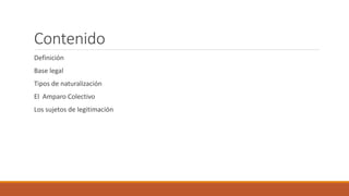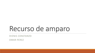 El documento define el recurso de amparo como un proceso judicial que protege los derechos constitucionales de las personas ante violaciones por autoridades o particulares. Explica que el amparo tiene una doble función de proteger a los ciudadanos y a la constitución. Además, distingue entre el carácter autónomo y subsidiario del amparo y señala que en la República Dominicana el amparo es subsidiario. Finalmente, introduce el concepto del amparo colectivo para proteger derechos e intereses colectivos y difusos, y enumera a