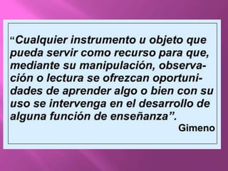 Los recursos didácticos mencionados en el documento incluyen documentos impresos y manuscritos, documentos audiovisuales e informáticos, y material manipulativo. Estos recursos sirven para guiar los aprendizajes de los estudiantes, ejercitar sus habilidades, evaluarlos y motivarlos, siempre considerando su madurez emocional.