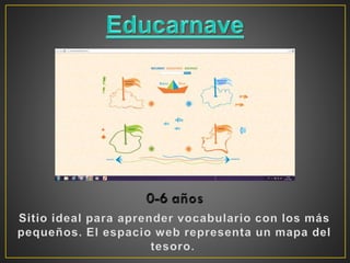Existe una gran cantidad de recursos digitales disponibles para enseñar y aprender inglés, pero lo más importante es saber cómo utilizarlos de manera efectiva en el aula. El documento proporciona una lista de varios sitios web populares con contenido en inglés dirigido a niños.