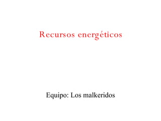 El documento habla sobre los recursos energéticos de México, en particular el petróleo y la electricidad. México tiene grandes yacimientos de petróleo que son explotados principalmente para transporte, industria y electricidad. Actualmente México está aumentando su producción de petróleo a cuatro millones de barriles por día. La mayoría de la electricidad en México se genera en plantas térmicas que queman petróleo y gas. Es importante usar los recursos energéticos de manera eficiente y reducir las emisiones para proteger el med