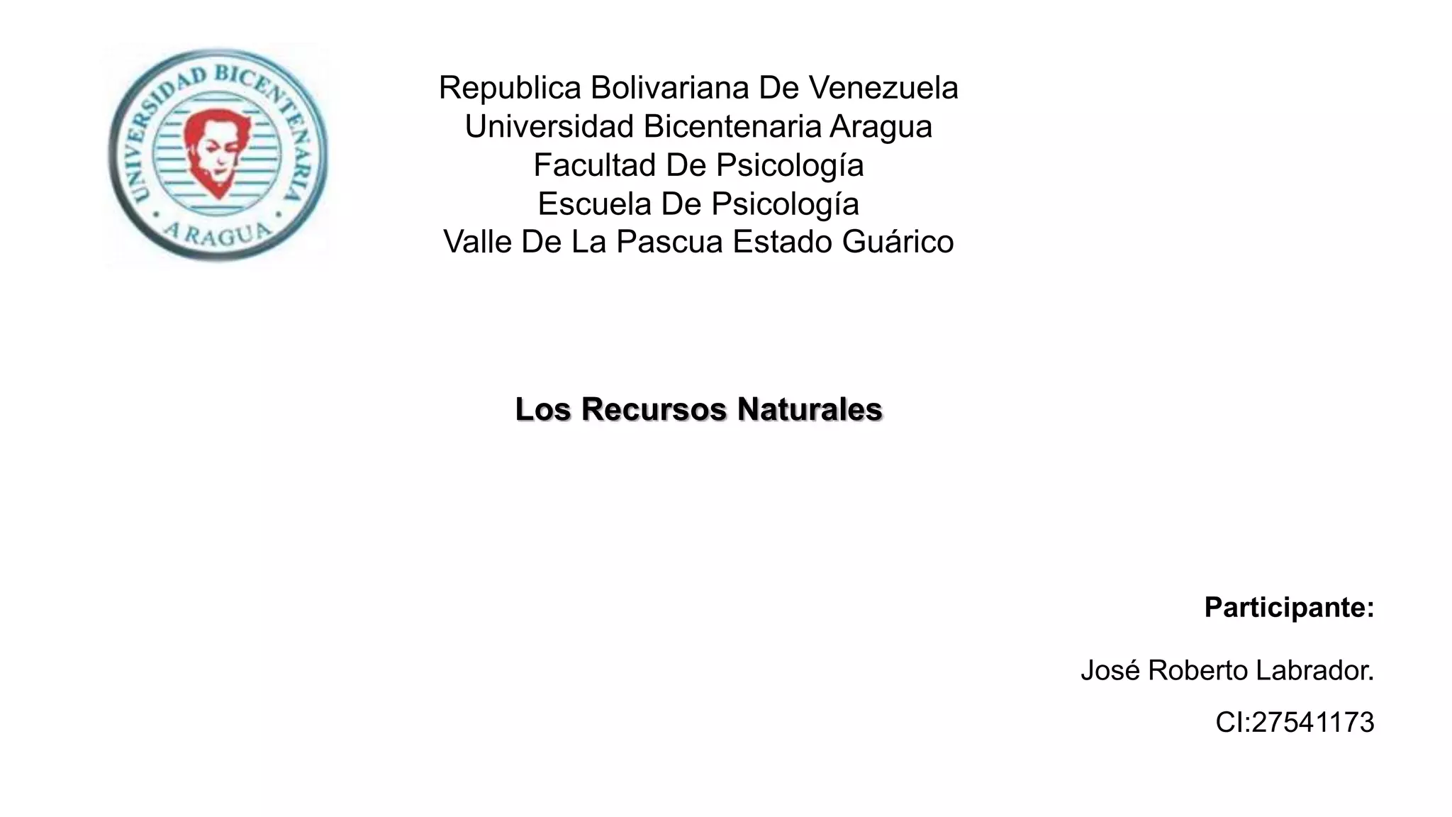 Este documento define y clasifica los recursos naturales. Explica que los recursos naturales son bienes o servicios proporcionados por la naturaleza sin intervención humana, e incluyen productos animales, vegetales, minerales, aire y temperatura. Luego clasifica los recursos naturales en bióticos y abióticos, renovables y no renovables, dependiendo de su origen y capacidad de renovación. Finalmente, enfatiza la importancia de proteger los recursos naturales a través de leyes y prácticas sostenibles en el hogar.