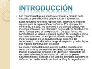 Este documento describe los diferentes tipos de recursos naturales de Puerto Rico, incluyendo plantas, animales, cuevas, playas, manglares y montañas. Explica que los recursos naturales pueden ser renovables o no renovables y la importancia de conservarlos.