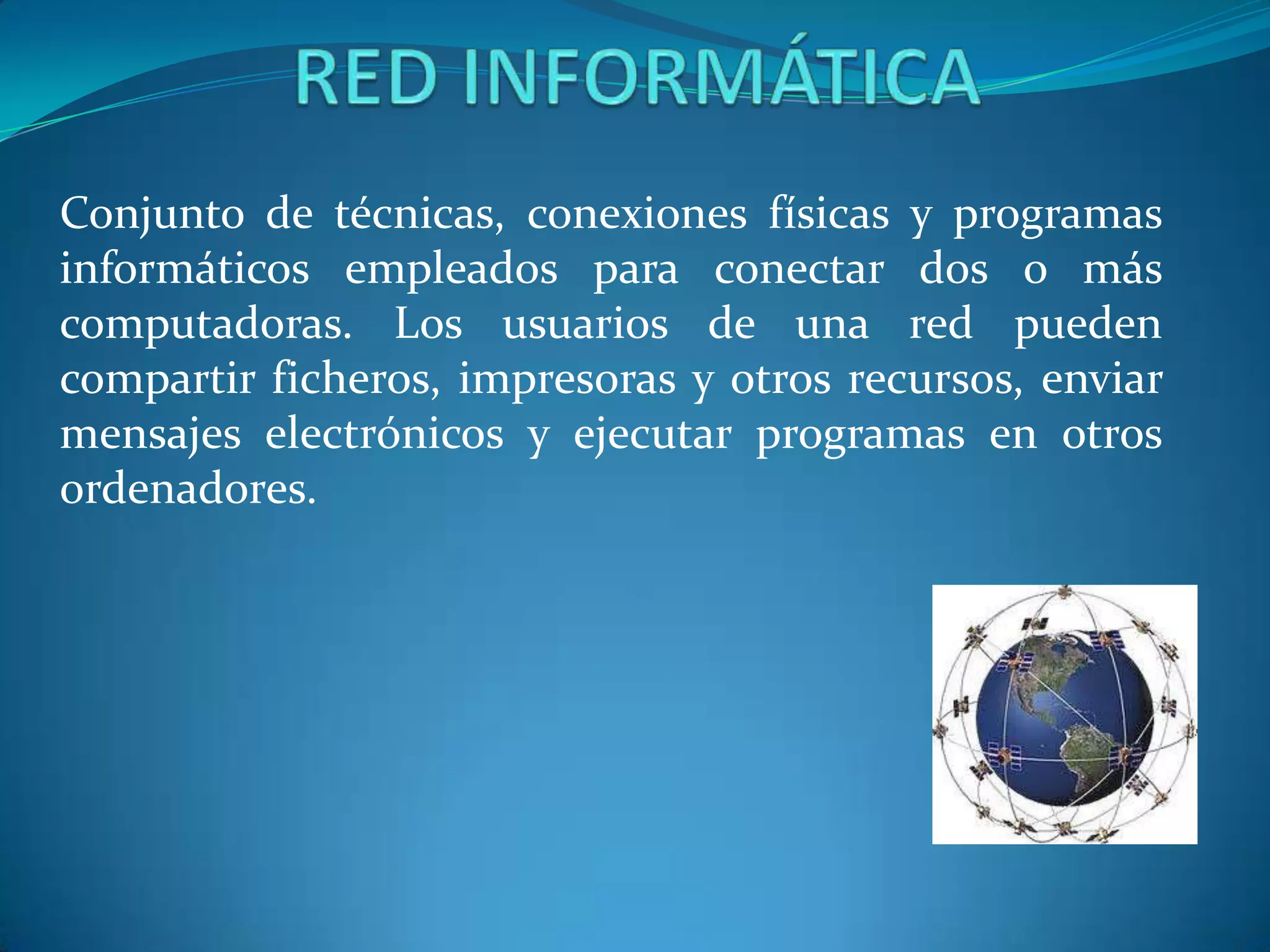 Una red es un conjunto de técnicas, conexiones físicas y programas que conectan dos o más computadoras para que los usuarios puedan compartir recursos como archivos, impresoras y ejecutar programas de forma remota. Existen dos tipos de conexiones: físicas que permiten la transmisión directa de señales y lógicas que permiten el intercambio de información entre aplicaciones. Las redes pueden ser LAN, redes pequeñas como una oficina, o WAN, redes más grandes que conectan á