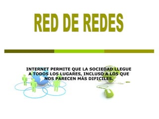 Internet es una red global que interconecta redes de computadoras de todo el mundo utilizando protocolos compatibles como TCP/IP. Se originó en la década de 1960 como una red militar estadounidense y creció rápidamente a partir de 1993 con el navegador Mosaic, que facilitó el acceso a la World Wide Web. Internet permite la comunicación y el intercambio de información entre personas en todo el mundo.