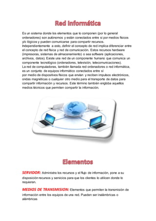 1) Una red informática es un conjunto de equipos informáticos conectados entre sí para compartir información y recursos.
