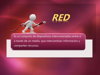 El documento describe los componentes y funciones de una red de computadoras, incluyendo hardware, software y tipos de servidores. También clasifica distintos tipos de redes según su alcance, como LAN, WAN y PAN, y menciona los medios de comunicación utilizados, tanto guiados como no guiados. Se destaca la importancia de los protocolos y modelos, como el modelo OSI y el TCP/IP, en la operación de las redes.