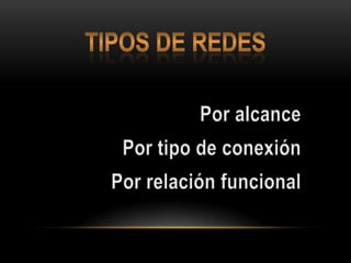 El documento describe los conceptos básicos de las redes de computadoras, incluyendo su definición, estructura, estándares, tipos, componentes, topologías, modelos, protocolos y cables. Explica que una red conecta equipos para compartir recursos mediante señales eléctricas u ondas electromagnéticas, y que su funcionamiento está definido por estándares como el modelo OSI de 7 capas o el modelo TCP/IP de 4 capas.