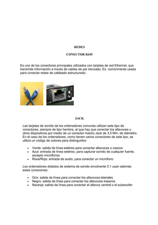 Este documento describe diferentes tipos de redes, incluyendo redes de área local (LAN), redes de área metropolitana (MAN) y redes de área amplia (WAN). Explica que las LAN son redes privadas de pequeño tamaño como oficinas o escuelas, que usan tecnologías como Ethernet y operan a altas velocidades. También describe elementos de red como conmutadores, routers y cables UTP.