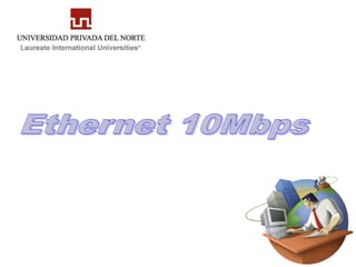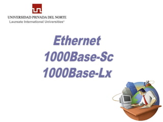 El documento describe la historia y características de las especificaciones Ethernet 10BASE-T, 100BASE-TX, 100BASE-FX, 1000BASE-T y 1000BASE-X. 10BASE-T utiliza cable UTP categoría 3 y código de línea Manchester. 100BASE-TX mejoró a categoría 5e y 200BASE-FX usa fibra óptica. 1000BASE-T y 1000BASE-X alcanzaron 1 Gbps a través de cableado UTP de categorías más altas y fibra óptica respectivamente.