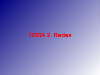 Este documento trata sobre redes de ordenadores. Explica que una red es un conjunto de ordenadores conectados que pueden compartir datos e recursos. Describe los tipos de redes como LAN, WAN, VPN y WLAN. También describe el hardware necesario como tarjetas de red, concentradores, switches, routers y cables. Además, explica conceptos como topología de redes, relación entre equipos, e Internet.