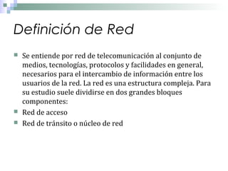 Este documento define y explica los conceptos básicos de las redes, incluyendo: (1) las definiciones de redes, tipos de redes como Internet, intranet y extranet, y topologías de redes; (2) componentes y dispositivos de redes como tarjetas de red, switches y routers; y (3) protocolos de comunicación como TCP/IP, direcciones IP y puertas de enlace. El documento proporciona una introducción general a los fundamentos teóricos y prácticos de las redes de computadoras.