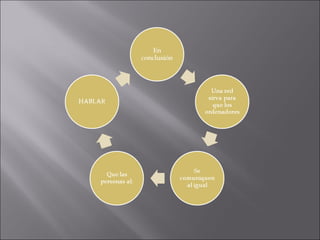 El documento describe los aspectos técnicos de la comunicación entre dispositivos, incluyendo el tipo de comprobación de errores, método de compresión de datos, y cómo los dispositivos indicarán el envío y recepción de mensajes.