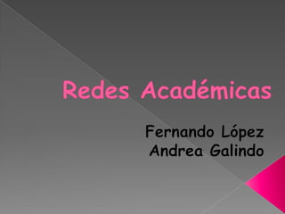 Las redes académicas permiten la interacción entre académicos para compartir información y conocimientos, mejorar la educación y la investigación a distancia, y participar en actividades científicas y académicas utilizando tecnologías avanzadas. Estas redes también brindan nuevos espacios libres de limitaciones para generar conocimiento a través de modalidades de aprendizaje mejoradas.