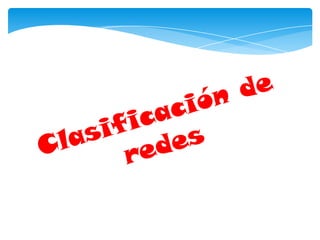 El documento habla sobre redes de computadoras. Explica que una red es un conjunto de equipos conectados para compartir información y recursos. Describe los componentes básicos de una red como hardware, software y protocolos. También menciona diferentes tipos de redes clasificadas por alcance, conexión, relación funcional, tecnología y topología.