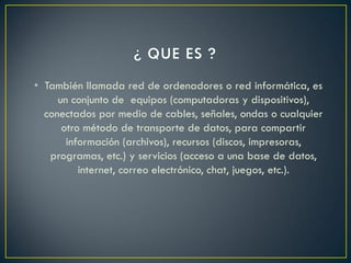 Las redes de computadoras son conjuntos de dispositivos interconectados que permiten el intercambio de información y recursos. Existen diversas topologías y tipos de redes, como LAN, WAN y redes inalámbricas, cada una con características y aplicaciones específicas. Se utilizan protocolos de comunicación como TCP/IP para garantizar la transferencia de datos y la conectividad entre diferentes sistemas.