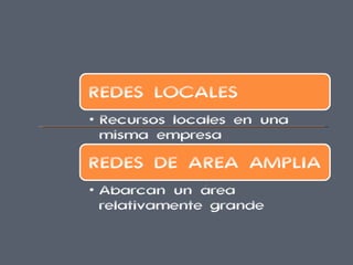 El documento describe diferentes tipos de redes de computadoras, incluyendo las topologías en anillo, estrella y bus. También describe las ventajas e inconvenientes de las redes locales (LAN) y de área amplia (WAN). Explica componentes clave de las redes como enrutadores, puertas de enlace, Wi-Fi y Bluetooth.