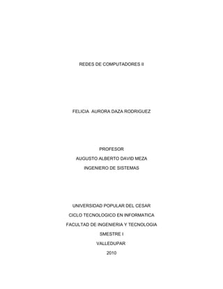 Este documento presenta información sobre redes de computadoras II. Explica conceptos clave como protocolos, el modelo OSI y capas de red. También describe objetivos de aprendizaje como identificar protocolos comunes y su uso en redes actuales. Finalmente, detalla aspectos técnicos de cada capa del modelo OSI y ejemplos de protocolos.