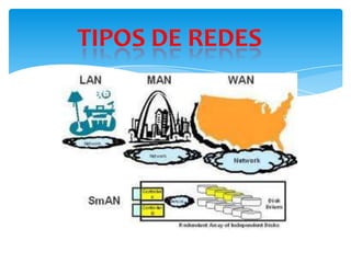 Este documento presenta una introducción a las redes de computadoras. Explica que una red permite el intercambio de información entre ordenadores interconectados. Describe los conceptos clave de redes como topología, elementos, tipos de redes como LAN, MAN y WAN. También cubre estándares de red y tipos de topología como anillo, estrella y bus.