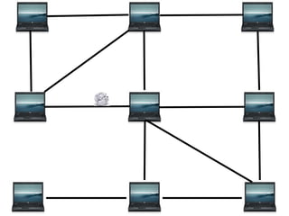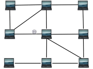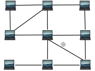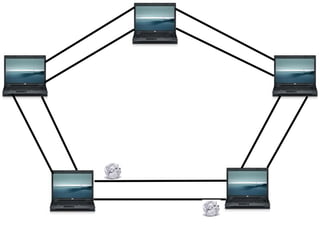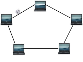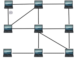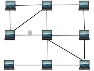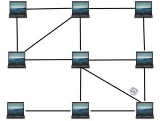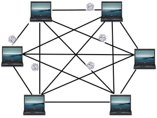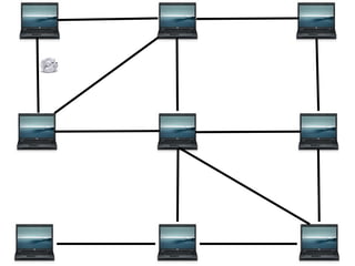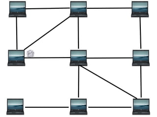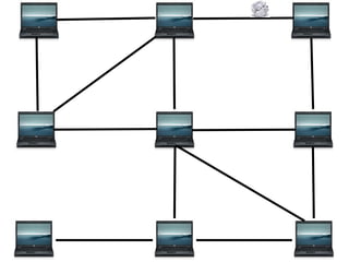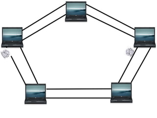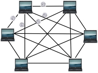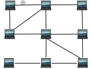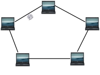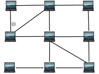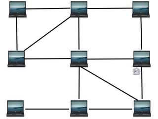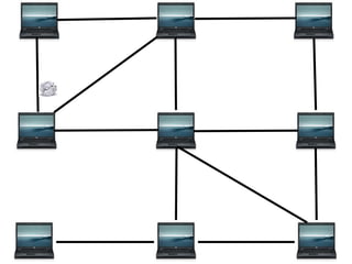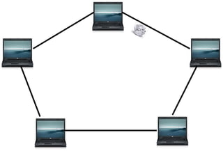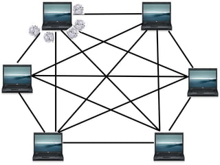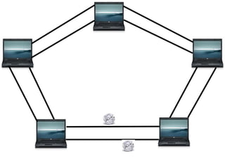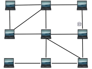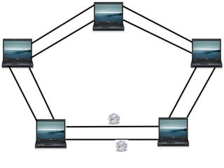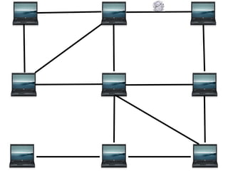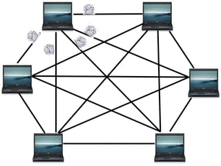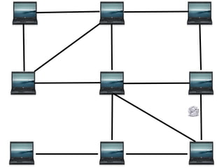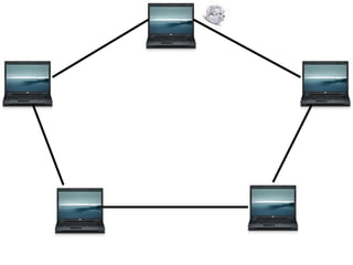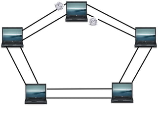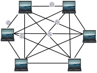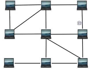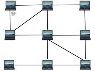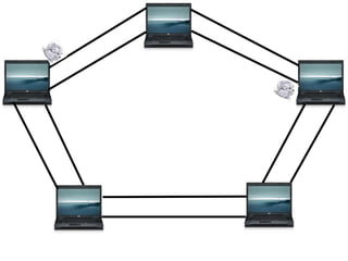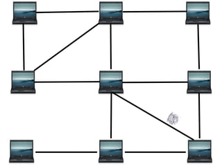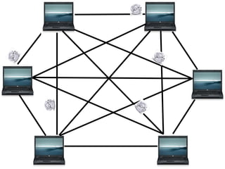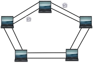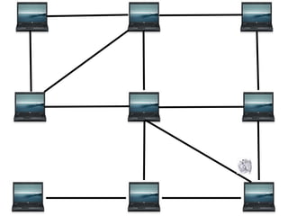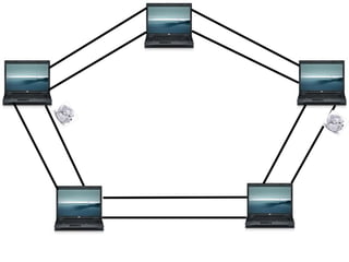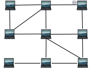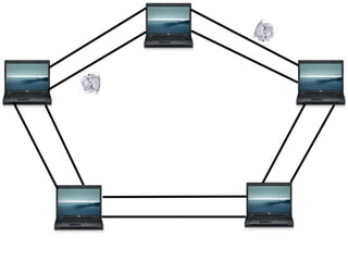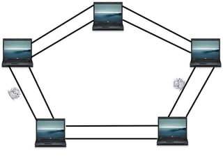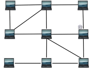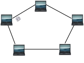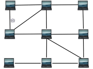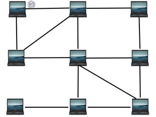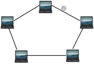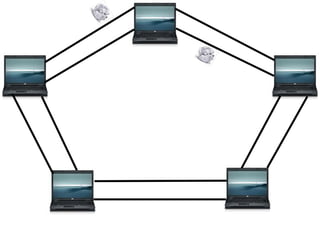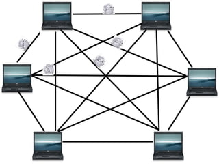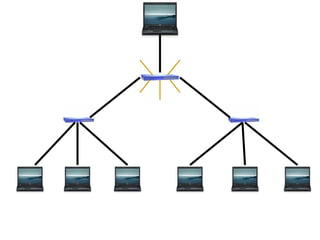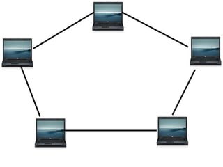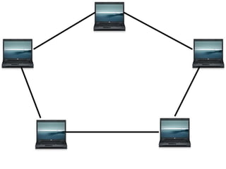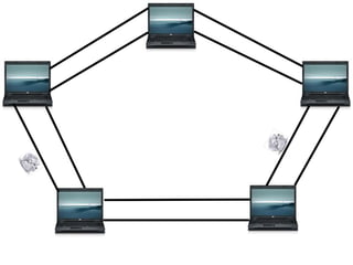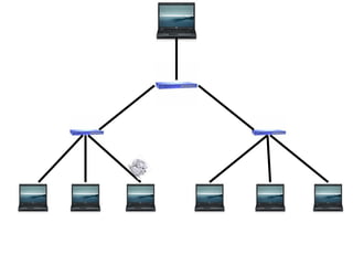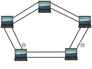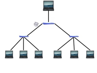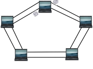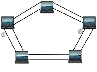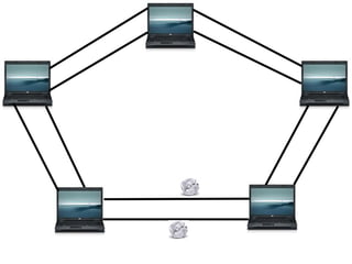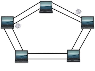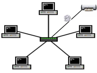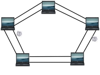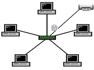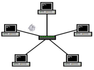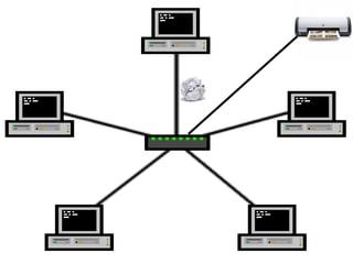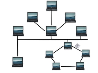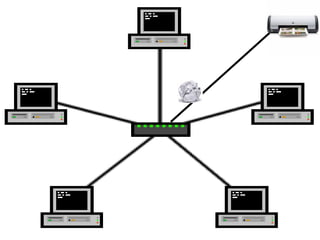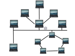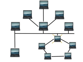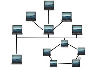 El documento describe diferentes tipos de redes informáticas, clasificándolas por topología, modo de transmisión, tecnología de transmisión y distancia. Se presentan características, ventajas y desventajas de cada tipo de red, como las redes en estrella, de bus, anillo, malla y mixtas, así como métodos de transmisión como simple, half-duplex y full-duplex. También se explican las redes LAN, MAN y WAN, sus usos y particularidades en diversas configuraciones.