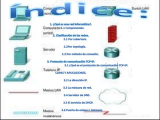 Una red informática está constituida por un conjunto de ordenadores y otros dispositivos conectados física o inalámbricamente para compartir recursos como hardware (impresoras, almacenamiento) y software (aplicaciones, archivos).