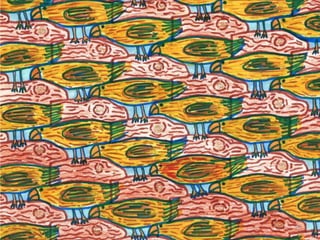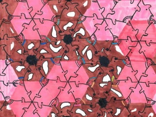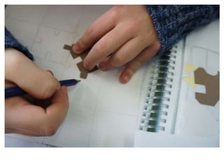 El documento describe cómo crear redes modulares a partir de formas cuadradas o triangulares mediante el recorte y rotación de módulos para que la nueva figura tenga la misma área y encaje con la original. Luego, los estudiantes finalizaron coloreando sus redes modulares con colores brillantes.