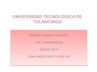 Este documento describe las redes peer-to-peer (P2P), las cuales permiten el intercambio directo de información entre computadoras interconectadas sin la necesidad de servidores centralizados. Explica que en una red P2P, los nodos actúan simultáneamente como clientes y servidores y comparten recursos como ancho de banda. También enumera algunas aplicaciones comunes de las redes P2P como el intercambio de archivos y la telefonía VoIP.
