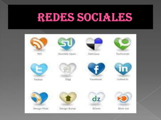 Las redes sociales conectan a grupos de personas a través de amistades, intereses u otros tipos de relaciones. Proporcionan compañía, apoyo emocional, consejos, regulación social, ayuda material y acceso a nuevos contactos. Las redes sociales más populares son Facebook, YouTube y Twitter.